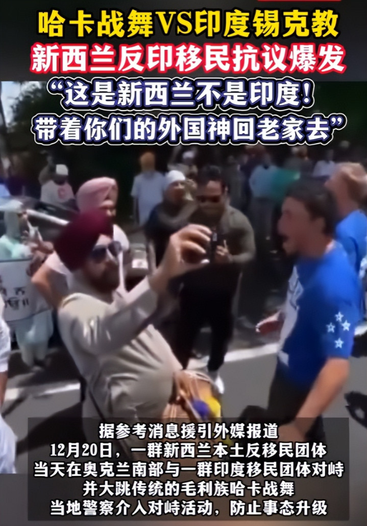 当地时间12月20日,奥克兰南部的街头出现了紧张对峙场景,名为“新西兰真爱国者”的本土团体发起游行,目标直指当地的印度锡克教移民群体。